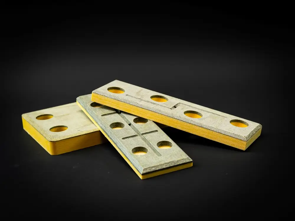 The material combines high compressive strength with the elasticity needed to absorb stress due to misalignment. Due to the vinyl ester resin, it retains its mechanical strength at elevated temperatures and shows minimal creep over time.